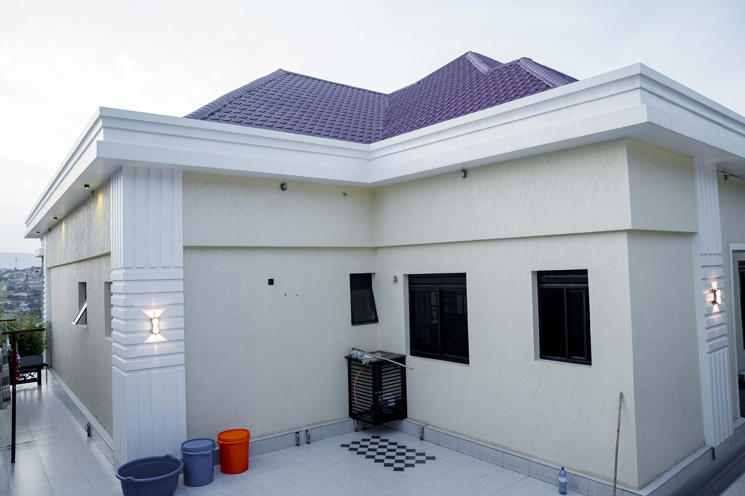 Beyond the walls, the lifestyle appeal of this home is truly unmatched, featuring a private landscaped garden and a wide upper balcony that offers breathtaking panoramic views of the surrounding Kigali hills. Practicality meets security in this gated compound, which includes a paved driveway with parking for three or more vehicles and high-capacity reserve water tanks for ultimate peace of mind. The lush greenery and sophisticated stone-accented facade create a stunning curb appeal that sets this property apart.