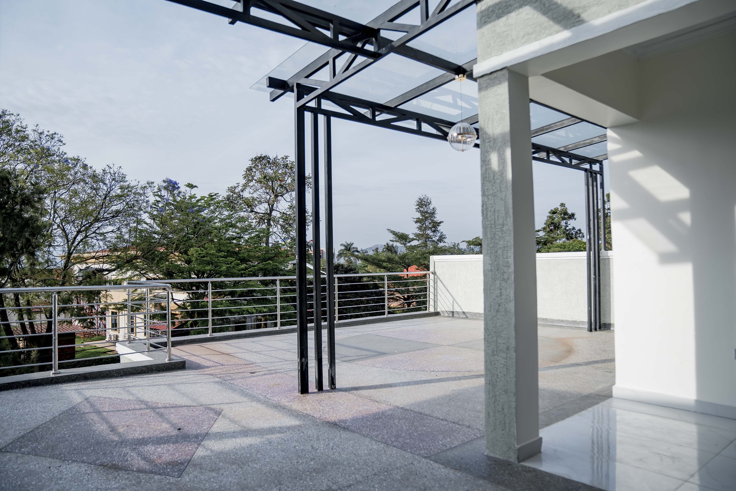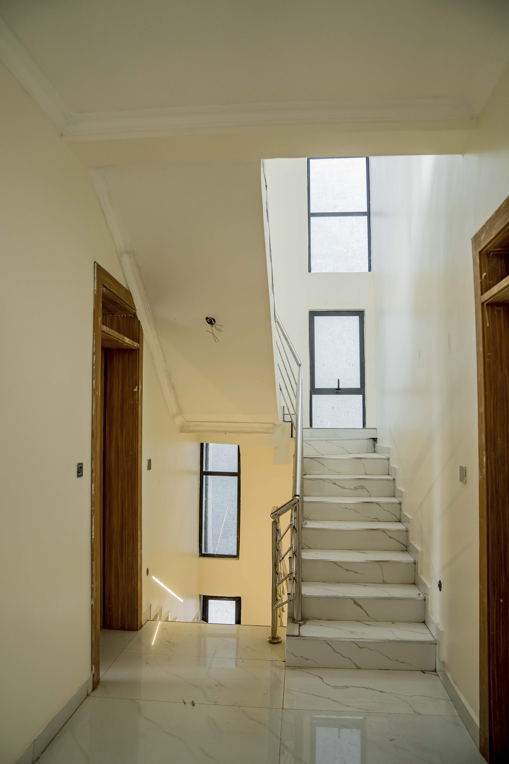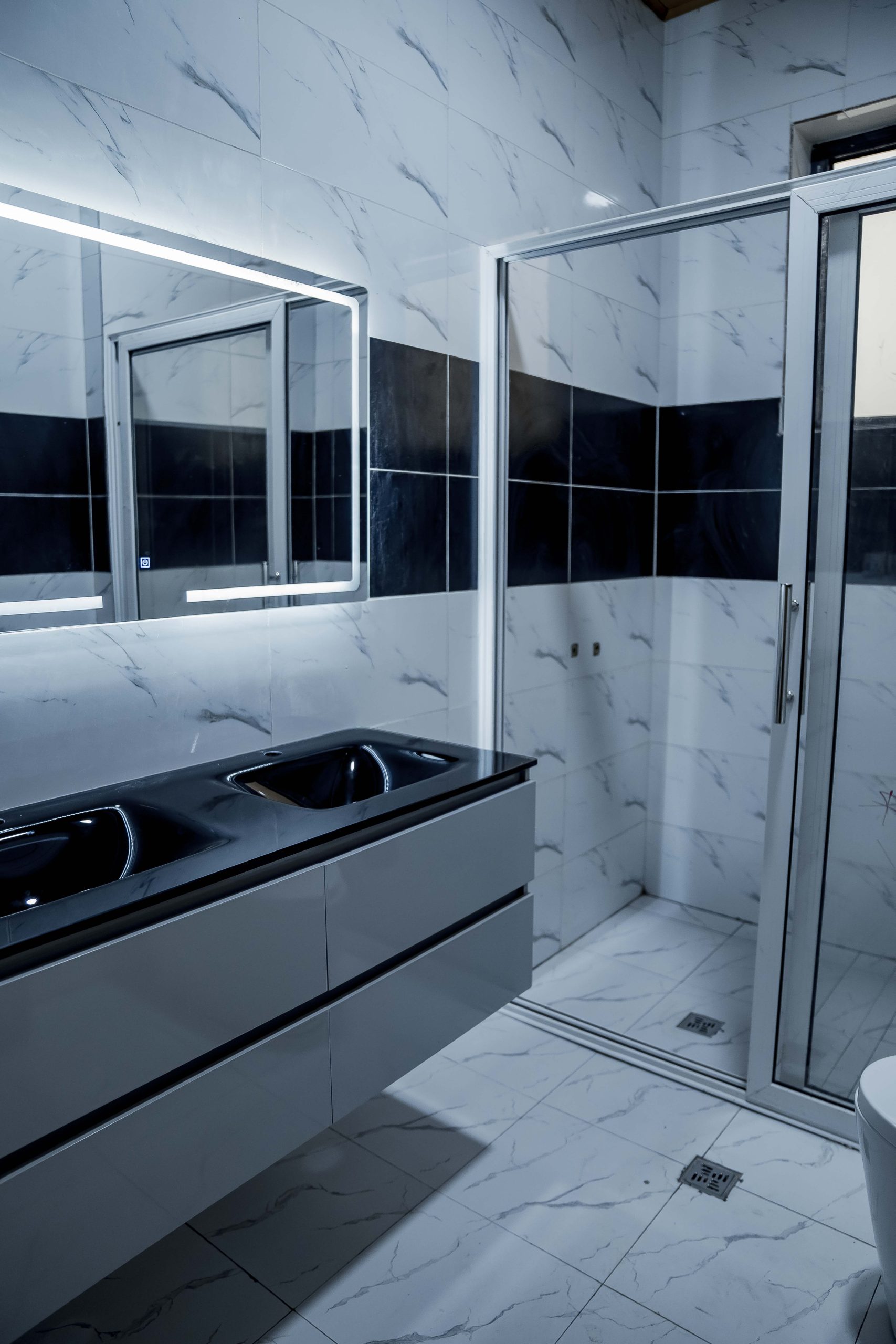 Functionality meets luxury in the gourmet chef’s kitchen, which is equipped with high-gloss minimalist cabinetry and premium grey-toned finishes. Complementing this modern core are the executive bathrooms, finished with high-grade porcelain tiles, walk-in glass showers, and designer double-sink vanities featuring integrated LED mirrors. Every detail, from the wooden door frames to the high-quality tile work, reinforces the standard of delivering lasting value in one of Kigali’s most sought-after residential nodes.